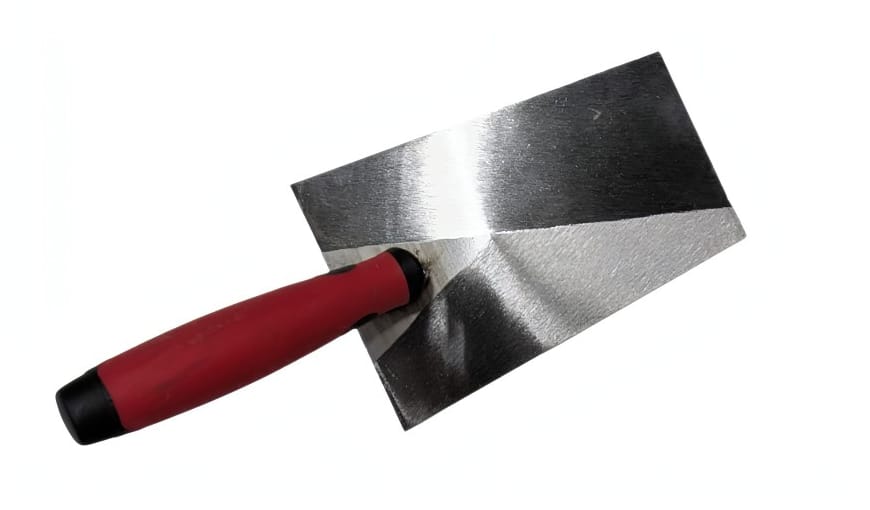 Diese kantige Stukkateurkelle wird beim Einsatz des SchwaBi-Systems verwendet, um die Kappen nach dem Betonieren sauber mit Beton zu überdecken.